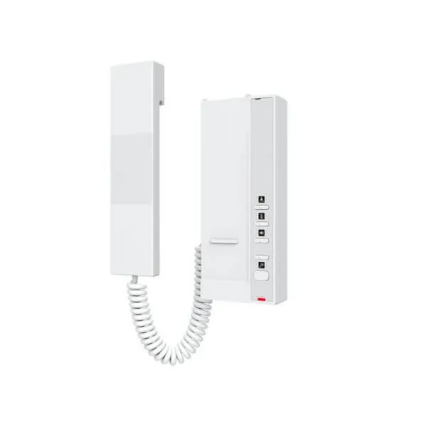 - Elegant white finish with ergonomic magnetic handset design