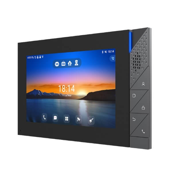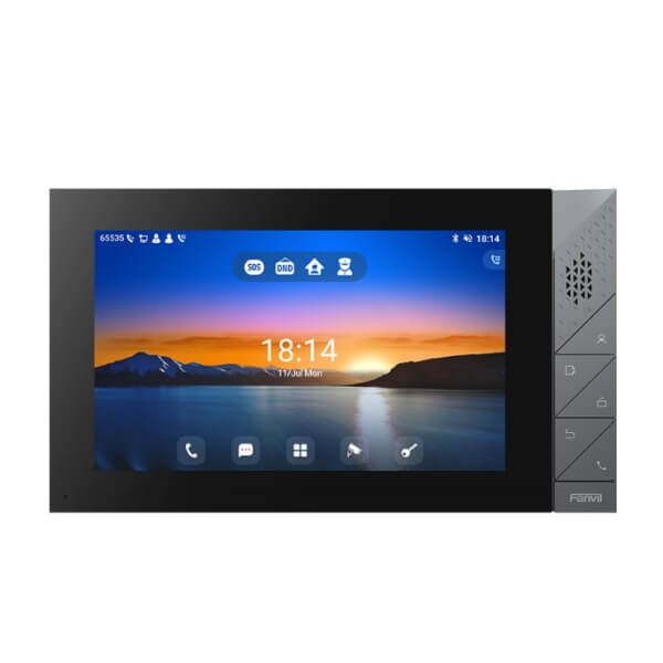 The Fanvil i55a Dubai is a premium indoor station which features an intuitive UI-based 7-inch color touch screen that not only offers a quick access to details at a glance as well as an enhanced visual clarity. It is based on Android 9.0 operating system and is designed to meet industry application customization needs and secondary development. Featuring powerful functionalities like remote door opening and real-time monitoring for security devices, i55A serves as a management assistant for communities, villas and office buildings.
