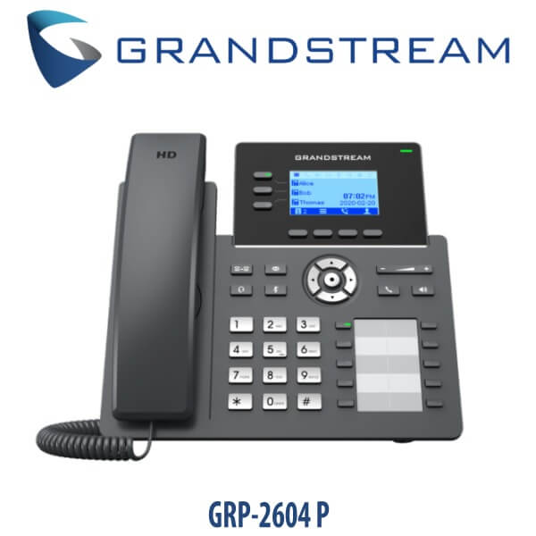- Grandstream GRP2604P IP Phone Dubai is an easy-to-use gadget that requires no technical expertise of its user. It is equipped with permanently-labeled buttons which are used to access various functions such as Speaker, Headset, Mute, Volume, Phone, History, Contacts, and Voicemail Message, as well as a permanently-labeled navigation cluster which enables the user to navigate the screen easily as desired. This saves time maximizing efficiency in the office.