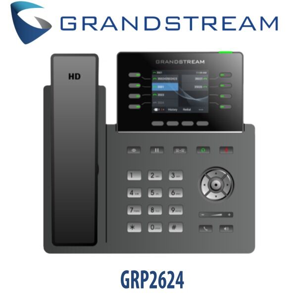 • Grandstream GRP2624 IP Phone Dubai is an easy-to-use gadget that requires no technical expertise of its user. It is equipped with permanently-labelled buttons which are used to access various functions such as Speaker, Headset, Mute, Volume, Phone, History, Contacts, and Voicemail Message, as well as a permanently-labelled navigation cluster which enables the user to navigate the screen easily as desired. This saves time maximizing efficiency in the office.
