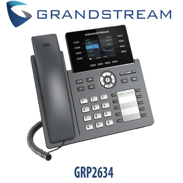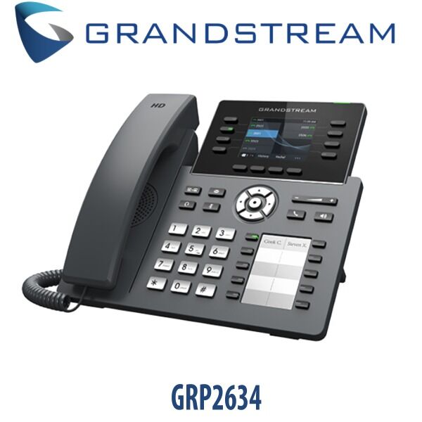- Grandstream GRP2634 IP Phone Dubai is an easy-to-use gadget that requires no technical expertise of its user. It is equipped with permanently-labelled buttons which are used to access various functions such as Speaker, Headset, Mute, Volume, Phone, History, Contacts, and Voicemail Message, as well as a permanently-labelled navigation cluster which enables the user to navigate the screen easily as desired. This saves time maximizing efficiency in the office.