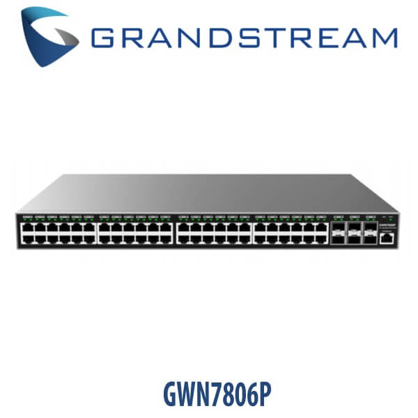 Featuring the Grandstream GWN7806P Dubai, an innovative Layer 2+ network switch that showcases a setup of 48 RJ45 Gigabit Ethernet ports, each bolstered with Power Over Ethernet (POE) capability. This remarkable feature simplifies the task of connecting and energizing a diverse range of devices, spanning from VOIP phones to IP cameras, all through a singular switch unit. Moreover, it incorporates six SFP+ ports thoughtfully designed for rapid fiber connections. Operating as a POE switch, it proudly holds a substantial power reservoir of 400 W, facilitating the transmission of up to 30 W of power through Ethernet cables to the interconnected devices. The incorporation of intelligent power control ensures precise power distribution, tailored to the specific requirements of each linked endpoint. This budget-friendly switch stands as a straightforward yet robust solution for establishing a high-quality enterprise network.