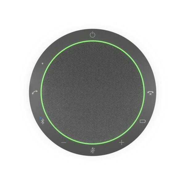 Two 900mA lithium-ion batteries can power the speakerphone for 12 hours. Once depleted, charge the device from the USB-A connector in 2.5 hours or from the USB-C connector in 5 hours.