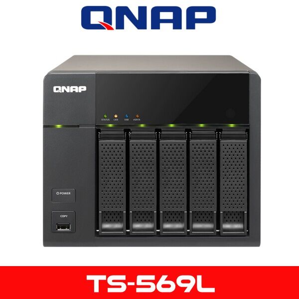 The Qnap TS569L Dubai Turbo NAS Server for SMBs from QNAP is a 5-bay, all-in-one NAS server with exceptional performance that can meet the storage requirements of modern SMB IT environments. It includes secure cross-platform file sharing for Windows, Mac and Linux/UNIX users, an iSCSI / IP-SAN storage combo solution and a number of value-added business applications. Critical business information can be safely protected against unexpected data loss with a set of integrated backup solutions. It is also an ideal shared storage solution for virtualized and clustered environments with VMware Ready and Citrix Ready certification, and has proven compatibility in Microsoft Hyper-V environments.