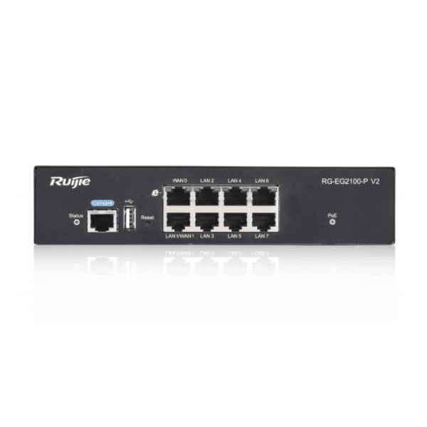 Ruijie RG-EG2100Pv2 Router Dubai is a multi-functional Cloud Managed Security Gateway product for various industries. Equipped with high-performance multi-core MIPS hardware architecture, the EG Gateway supports a wide range of features such as high-performance NAT, WAN load balancing, smart flow control, online behavior management, visualized IPsec VPN, web authentication, etc.