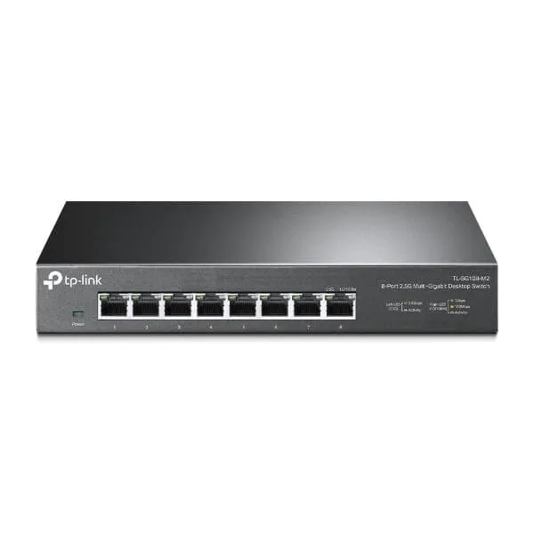 Upgrade your home or business with blazing fast wired network speeds with the Tplink TL-SG108M2 Dubai 8-Port 2.5 Gigabit Unmanaged Switch from TP-Link. Featuring eight 2.5 Gigabit Ethernet ports and a plug-and-play design, this unmanaged switch connects to compatible routers and devices using Cat 5e to 6a cables, allowing you to perform high-bandwidth tasks such as data backups without having to purchase new cables, hardware, or install software drivers. By increasing your number of available 2.5G Ethernet ports, you can enjoy exceptionally high-speed data transfers with multiple connected computers, network storage devices, Wi-Fi 6 access points, and more to provide improved multiplayer gaming, 4K video streaming, and productivity experiences.