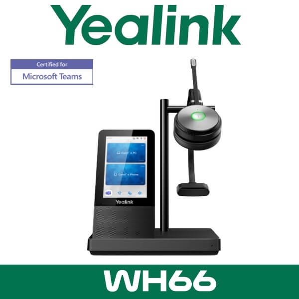 The Yealink  WH66 Mono Teams Dubai is the Industry-leading DECT wireless headset, with WH66 Dual and WH66 Mono two models, opening an entirely new form of desktop collaboration. Work seamlessly with major UC platforms and integrate natively with Yealink IP Phones. 4.0 inch (480 x 800) capacitive touch screen of base offers newly work experience, just one touch, all control. Act as a workstation, managing phone calls, connecting with multiple devices (desk phone/mobile phone/computer), charging mobile phone wirelessly, and even playing a speakerphone’s role. Best of all, deploying such a multifunctional workstation only needs to plug directly.