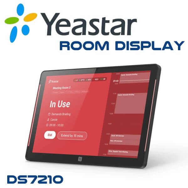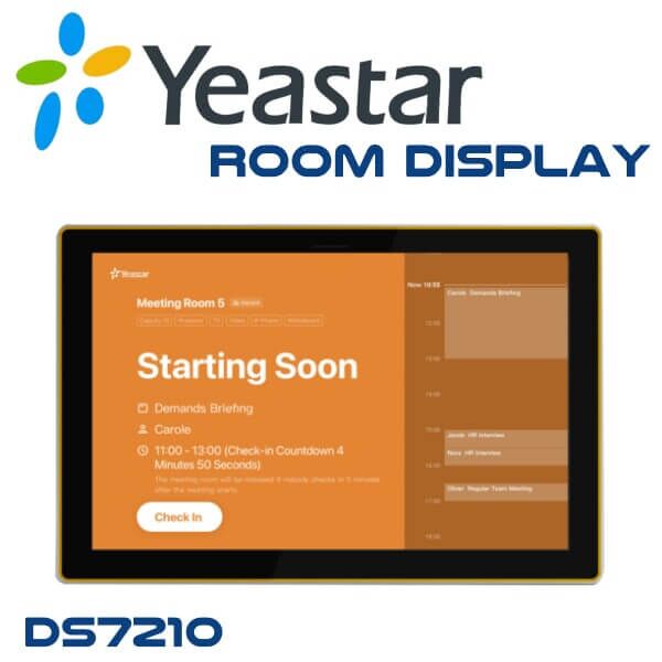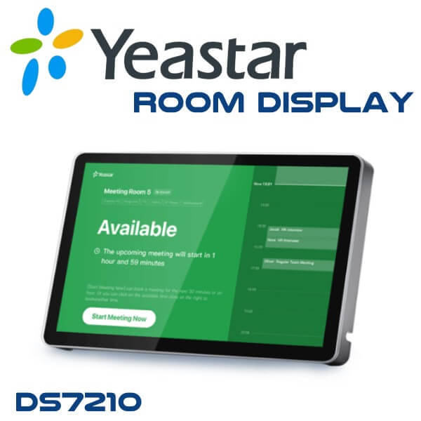 The DS7210 Dubai Room Display is a digital signage collaborating with Yeastar Workplace to display meeting room availability in real-time and book meetings on the spot. Mounted at the entrance of a meeting room, it shows room status through a side LED indicator. Feel free to customize the color signals to fit your office ambiance from 16 color options in the system. A 10.1″ LCD touch screen supports reserving on the spot and meeting check-ins & check-outs. Custom branding is also available to set up your company logo and background image that appear on the screen.